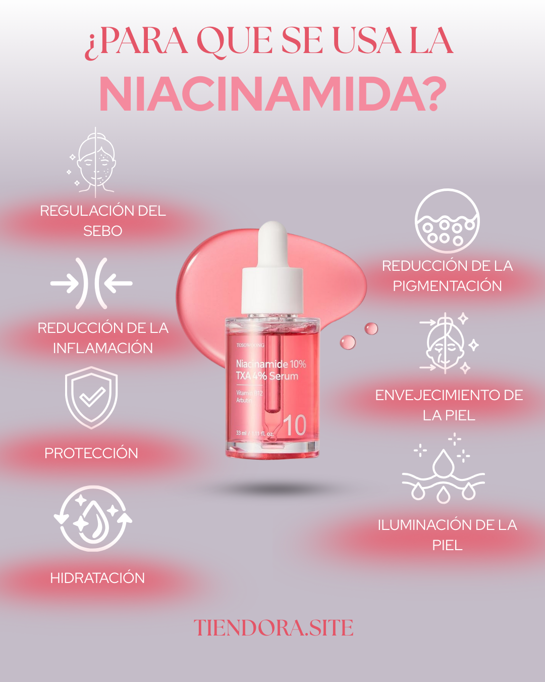🌿 La niacinamida trabaja contra la inflamación, la pigmentación y el envejecimiento, dejando tu piel más fuerte, clara y radiante.