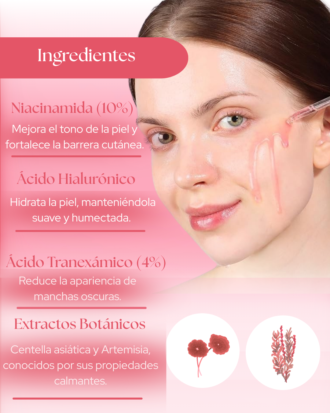 ✨ Una fórmula única con Niacinamida, Ácido Hialurónico, Ácido Tranexámico y Extractos Botánicos que aclaran, hidratan y calman tu piel.